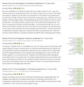 At The Rylands we believe moving into a care home should be a positive experience and we encourage our residents to continue with their hobbies, be involved with entertainment and activities. We provide a closed facebook group for family and friends to stay updated and remain in touch with their loved ones. We have a dedicated Social and Wellbeing Lead who organises a social calendar, events and engages well with the community.